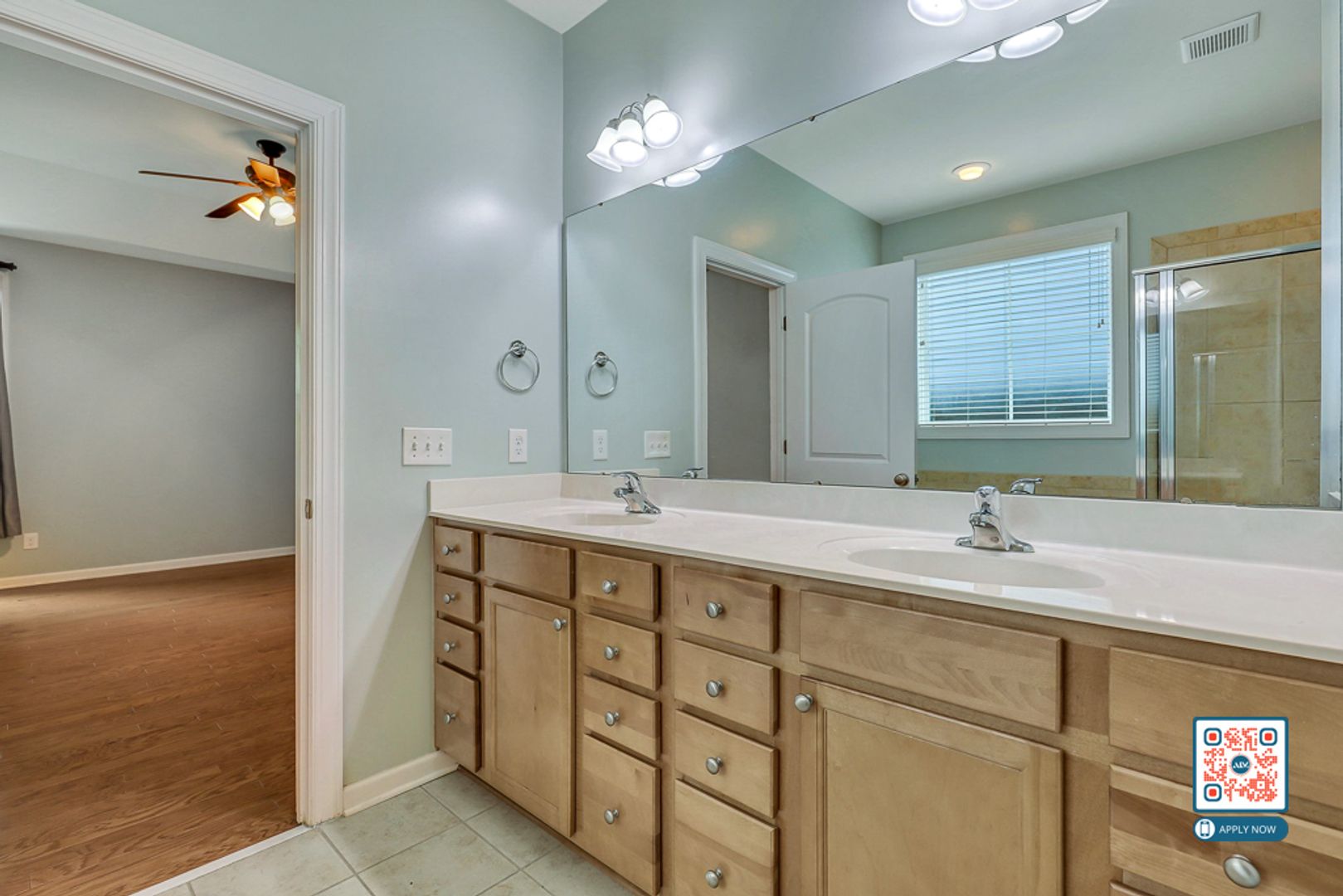 The main-floor primary suite features dual vanities, a walk-in shower, and a large soaking tub—ideal for unwinding after a long day. Hardwood floors provide warmth and elegance throughout the main level, and the attached two-car garage adds everyday practicality.